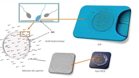 3. Physiological ICSI(PICSI):藉由體外培養精蟲跟玻尿酸的結合,挑選正常和成熟的精蟲,在將精蟲注入卵子內。