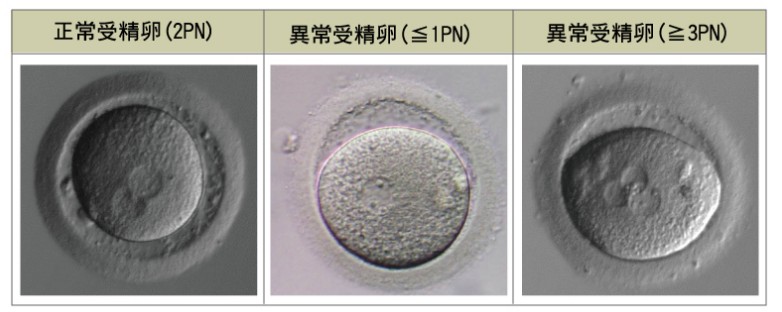 受精後隔天觀察卵子內是否有兩個原核(2PN),即為正常受精卵。